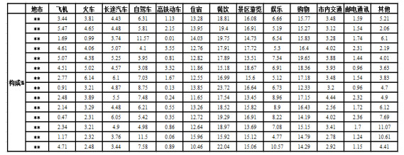 ◆國內(nèi)游客在本省的人均旅游消費支出及消費結(jié)構(gòu),包括:一日游游客的人均旅游消費支出和非一日游(過夜)游客人均旅游消費支出