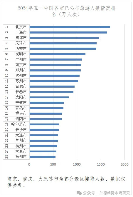 文旅部數據顯示,五一假期5天全國國內旅游出游2.95億人次。根據公布數據,2024年五一期間旅游人數省排名中,河南、安徽、貴州、四川、廣東五省旅游人數絕對值排名前五,江蘇省由于統(tǒng)計樣本僅限于部分景區(qū)在整個排名中暫居第八;市排名中,北京、上海、成都、天津、西安絕對值排名前五,南京市統(tǒng)計樣本僅限于部分景區(qū)在整個排名中暫居第八。