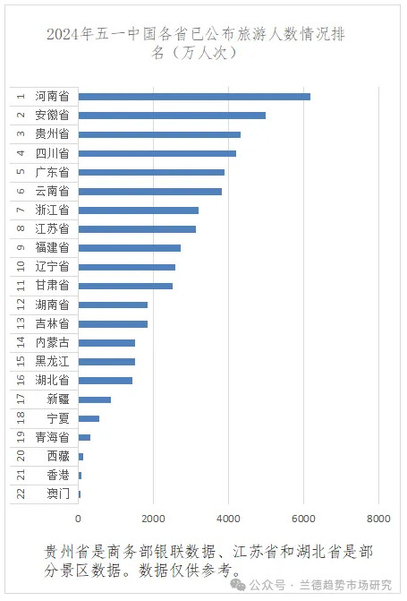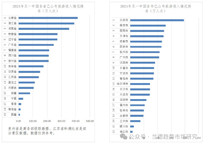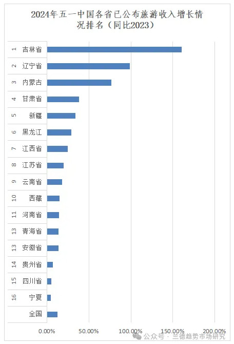 二2024年五一中國各省市旅游數據增長情況排名統(tǒng)計